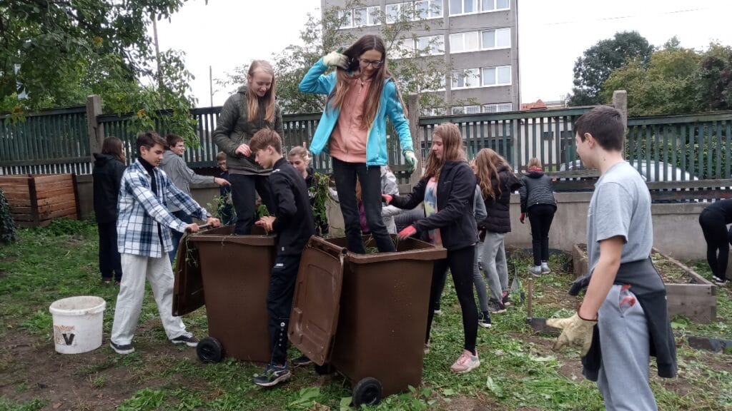 V olomoucké ZŠ Stupkova má kompostování biomateriálu na starosti tým složený z dobrovolníků z řad žáků. Celkem má asi 20 členů, kteří se střídají ve dvojicích.
