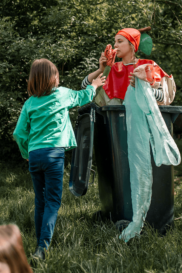 Příběh vypráví o snězeném jablíčku – jádřinci Rubínovi, kterému se nelíbí, že byl vyhozen do koše a měl by skončit na skládce či ve spalovně. Děti se stanou součástí představení a pomohou panu popeláři s návratem jadřince Rubína zpátky k mamince – jabloni. Následuje živý přenos z kompostu v podobě žížalí TV a další aktivity pro děti.